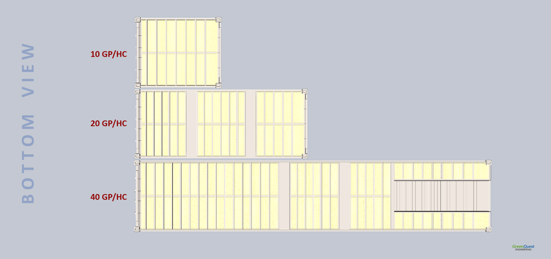 The bottom view, or underside, of the basic ISO shipping containers is important to see and understand other slight differences in the shipping containers.